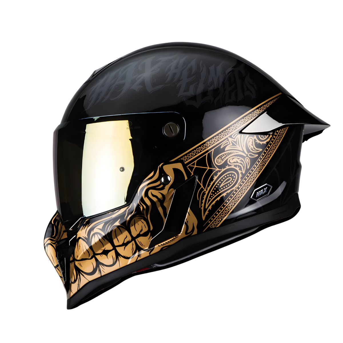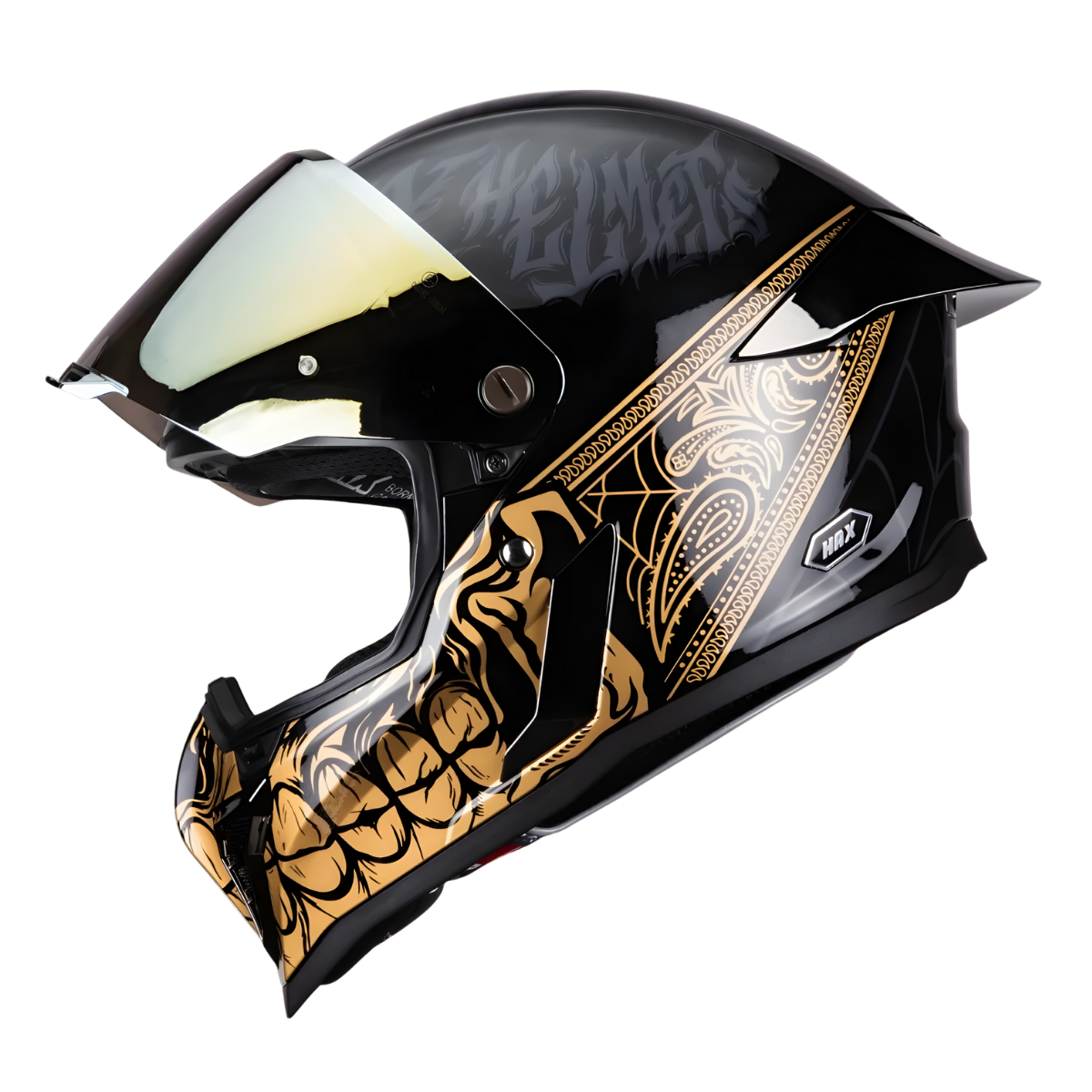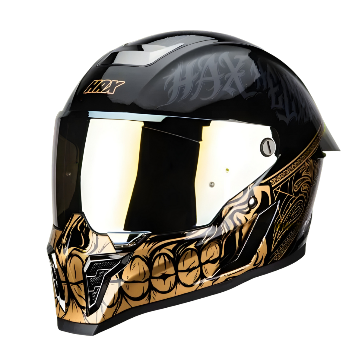 El Casco Integral HAX Black Pearl Bandit combina máxima seguridad, diseño agresivo y gran comodidad, ideal para motociclistas que buscan protección confiable sin sacrificar estilo. Su acabado negro con detalles dorado brillo le da una apariencia elegante y deportiva, perfecta tanto para uso urbano como carretera.