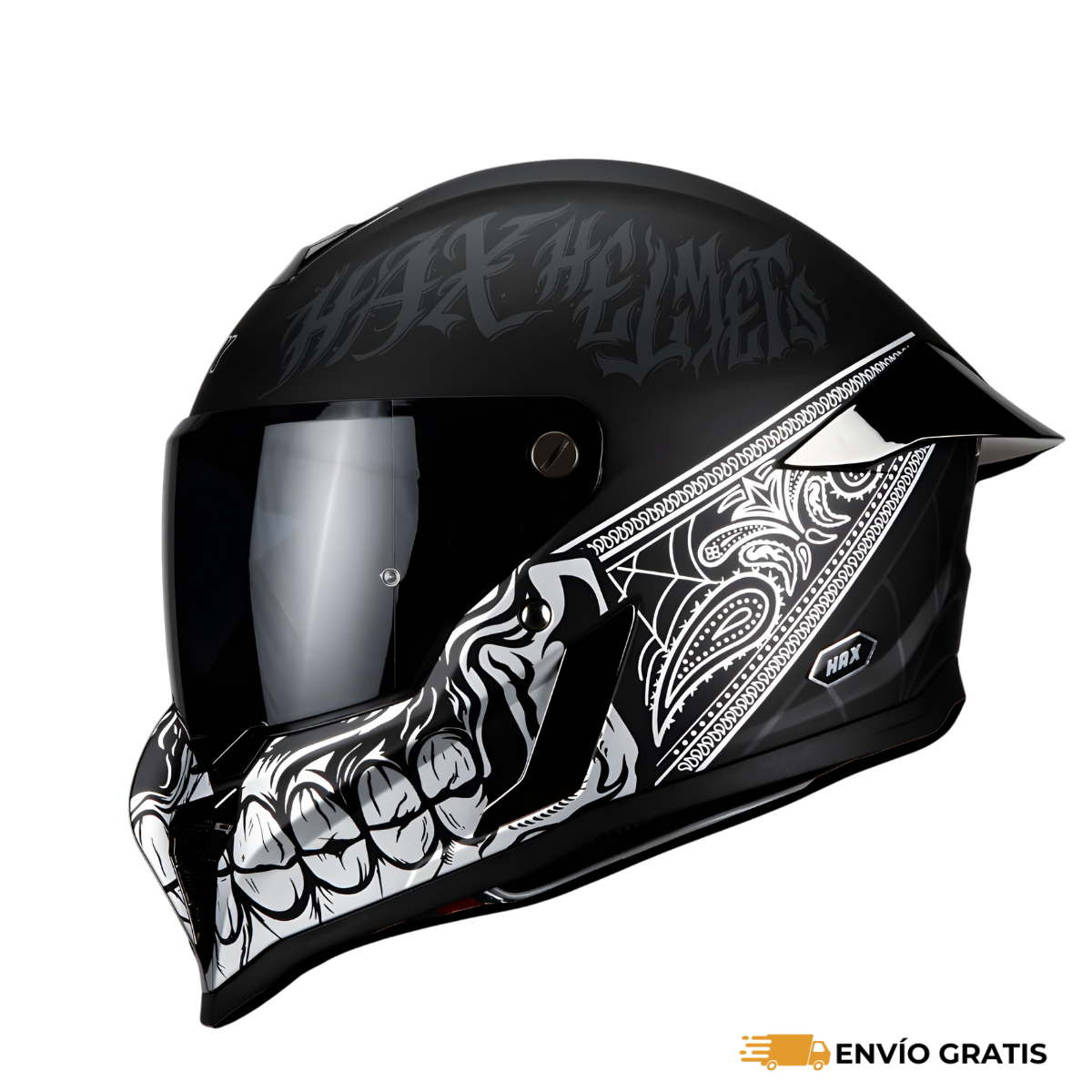 El Casco Integral HAX Black Pearl Bandit ofrece una combinación ideal de seguridad, diseño moderno y comodidad, pensado para motociclistas que exigen protección confiable y una estética elegante. Su acabado negro con detalles en plata mate brinda un look sobrio y deportivo, perfecto para ciudad o carretera.