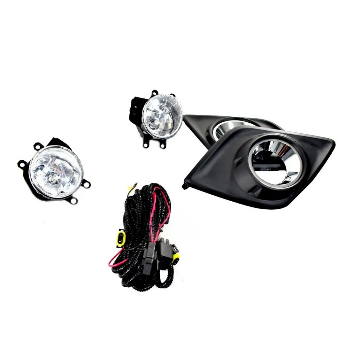 Kit de faros auxiliares de niebla halógenos diseñados para Toyota Hilux 2020-2021 versión Base, ideales para mejorar la visibilidad en condiciones de lluvia, neblina o baja iluminación.