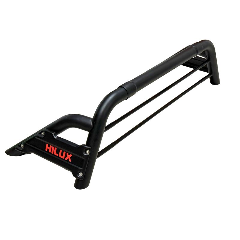 Personaliza tu Toyota Hilux y dale un estilo más rudo, robusto y auténtico tipo Off Road con este roll bar arco en color negro. Su diseño moderno incluye luz de freno integrada y detalles en rojo que realzan la estética 4×4 de tu pickup.