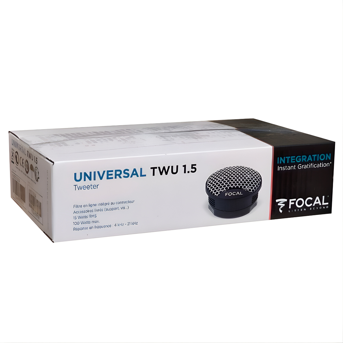 El tweeter Focal TWU 1.5 está diseñado para quienes buscan un sonido más claro, definido y detallado en su sistema de audio automotriz. Forma parte de la gama Universal de Focal, lo que permite instalaciones personalizadas utilizando kits existentes o adaptándose fácilmente a múltiples configuraciones.